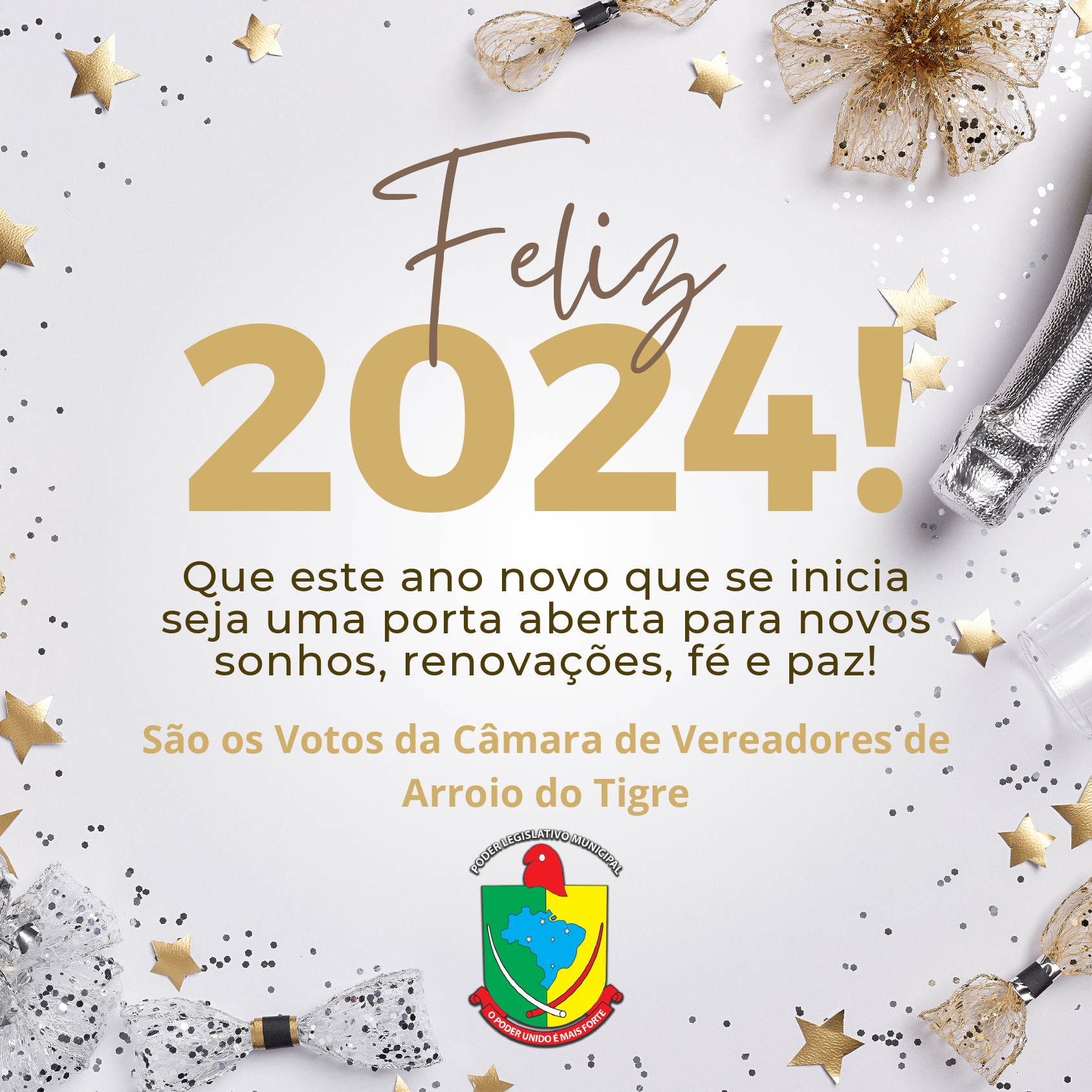 A Câmara de Vereadores de Arroio do Tigre deseja a todos um próspero Ano Novo, repleto de realizações, saúde e felicidade!