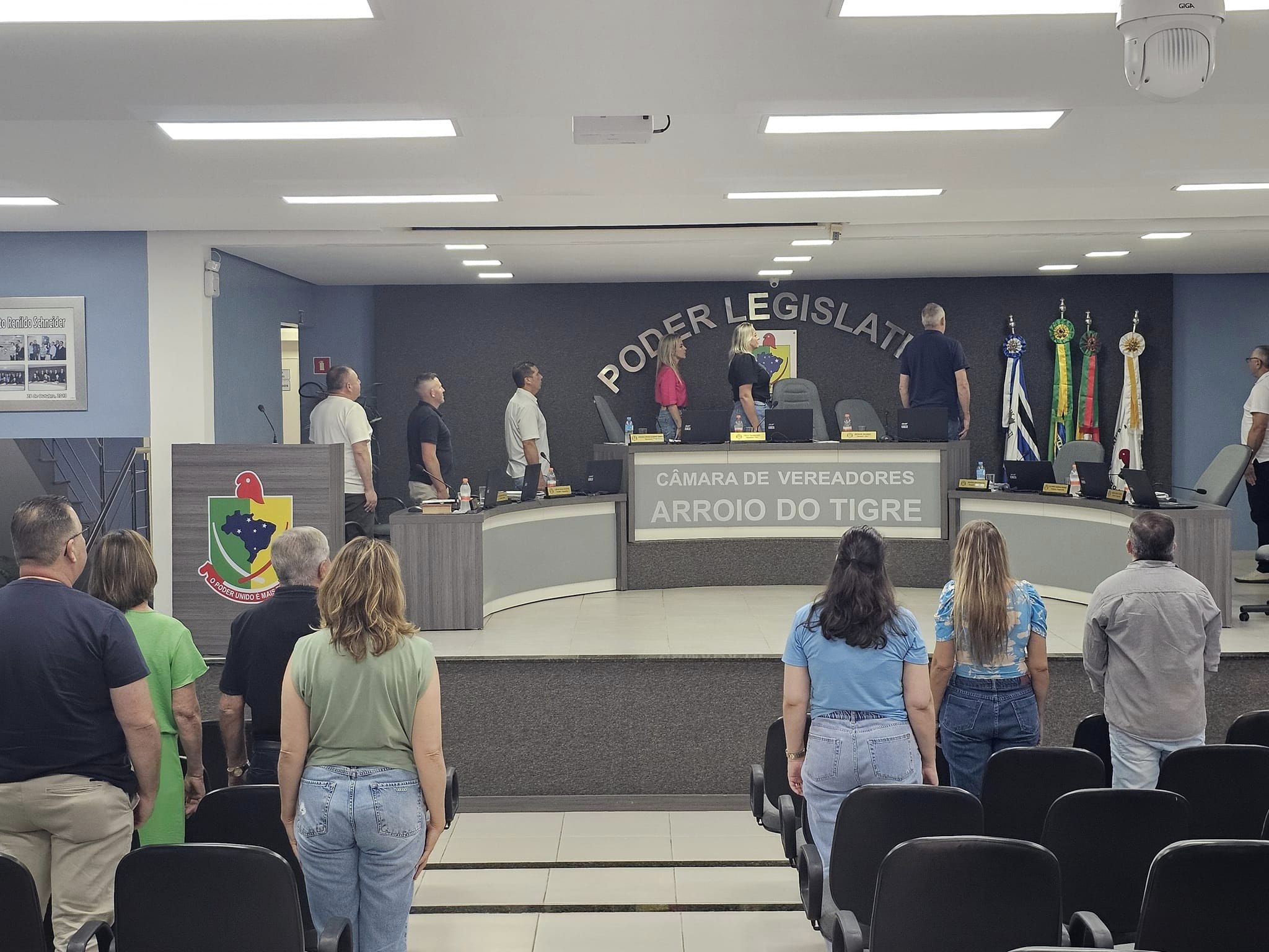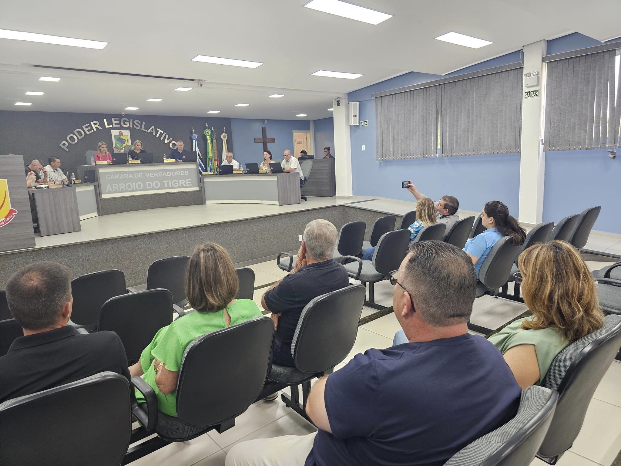 Antes porém, foi realizada a Sessão Ordinária.A cerimônia teve início com a entoação do hino municipal, seguida pela leitura bíblica conduzida pelo vereador Auri Schneider e pela leitura das correspondências recebidas e expedidas. Três Projetos de Lei foram apresentados e encaminhados às comissões, além de um Pedido de Providências. Na Tribuna, espaço para explicações pessoais, se manifestou o vereador Carlos Joceli da Silva (Carlinhos).