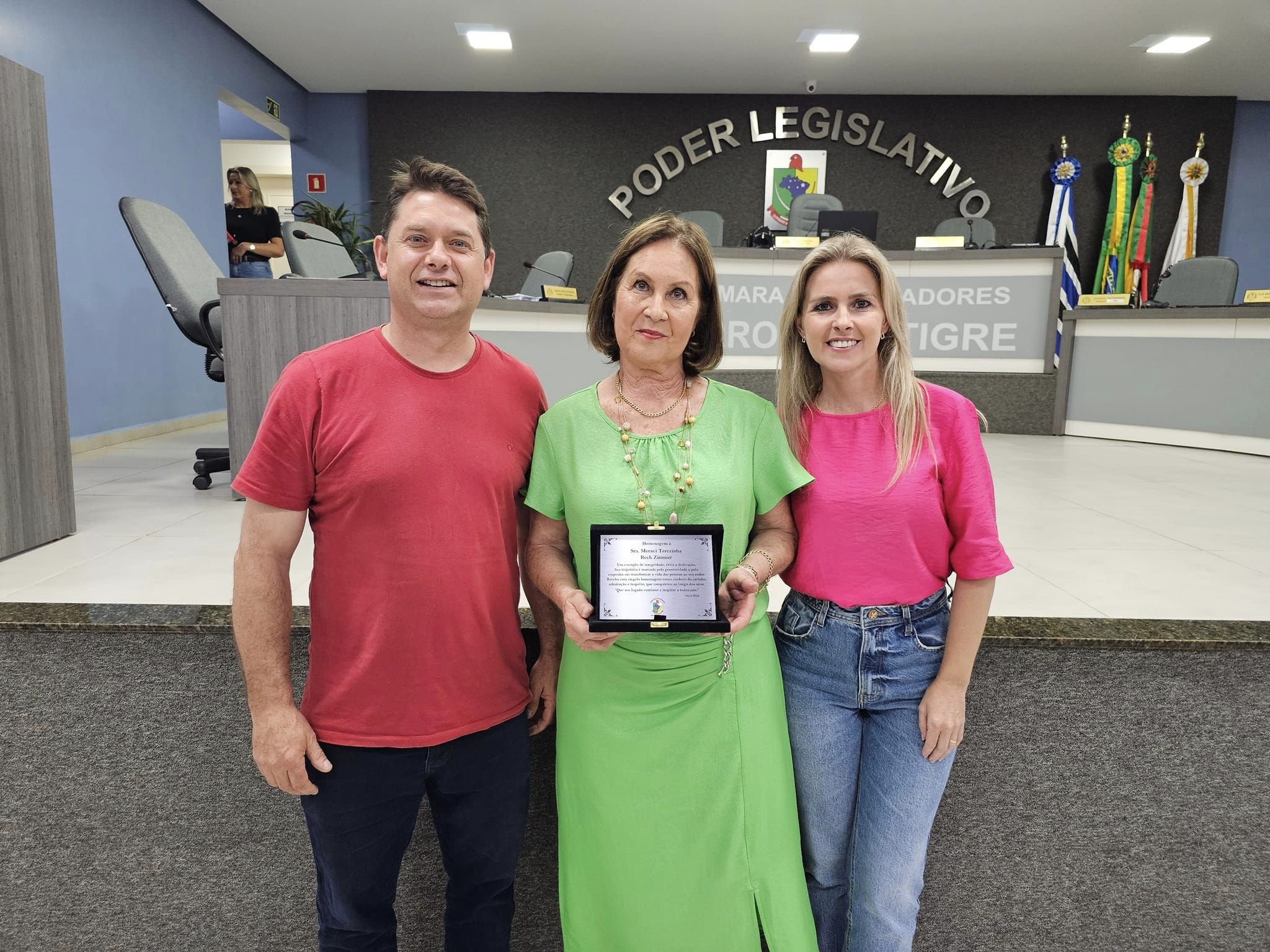 A Câmara de Vereadores de Arroio do Tigre realizou a Sessão Solene nº 123 para prestar homenagem a Meraci Terezinha Rech Zimmer, reconhecendo seus 52 anos de dedicação ao Cartório de Arroio do Tigre.