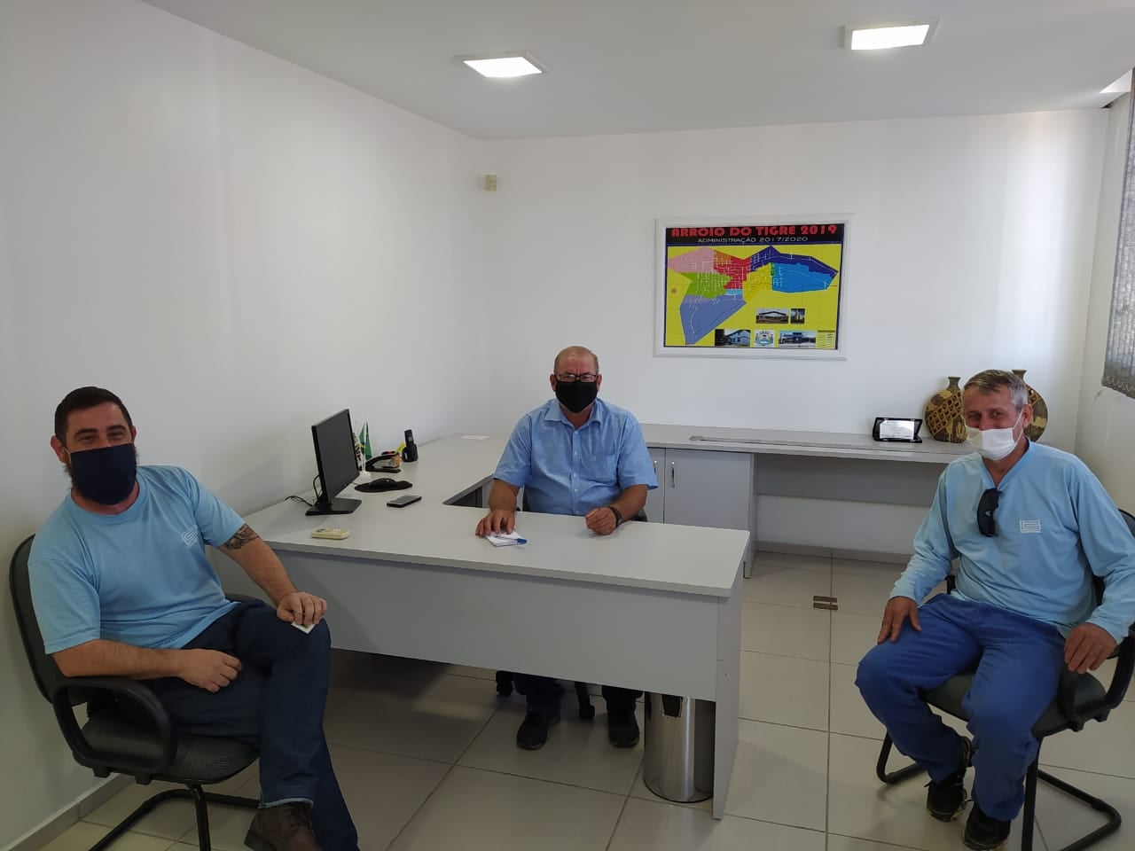 Na tarde de quinta-feira, dia 22 de abril, estiveram reunidos na Sala da Presidência os servidores da Corsan, o Agente de Serviço Operacional Marcelo Schweighofer e o Agente Administrativo Fabrício Segatto juntamente com o Presidente do Legislativo Gilberto Abel Schäfer.