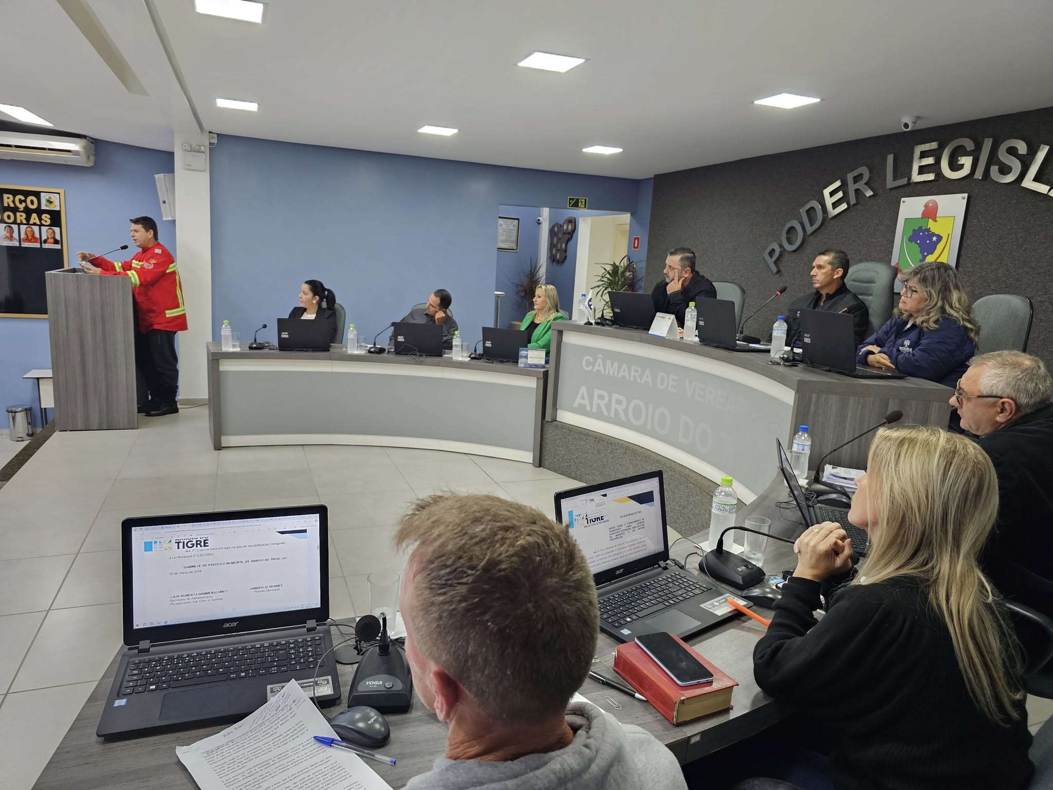 Na Tribuna Livre, espaço aberto à comunidade na primeira Sessão de cada mês, se manifestaram o pastor da Igreja Evangélica de Confissão Luterana de Arroio do Tigre, Edgar Heise, e o presidente dos Bombeiros Voluntários do município, Fábio André Zimmer (Deko Zimmer).