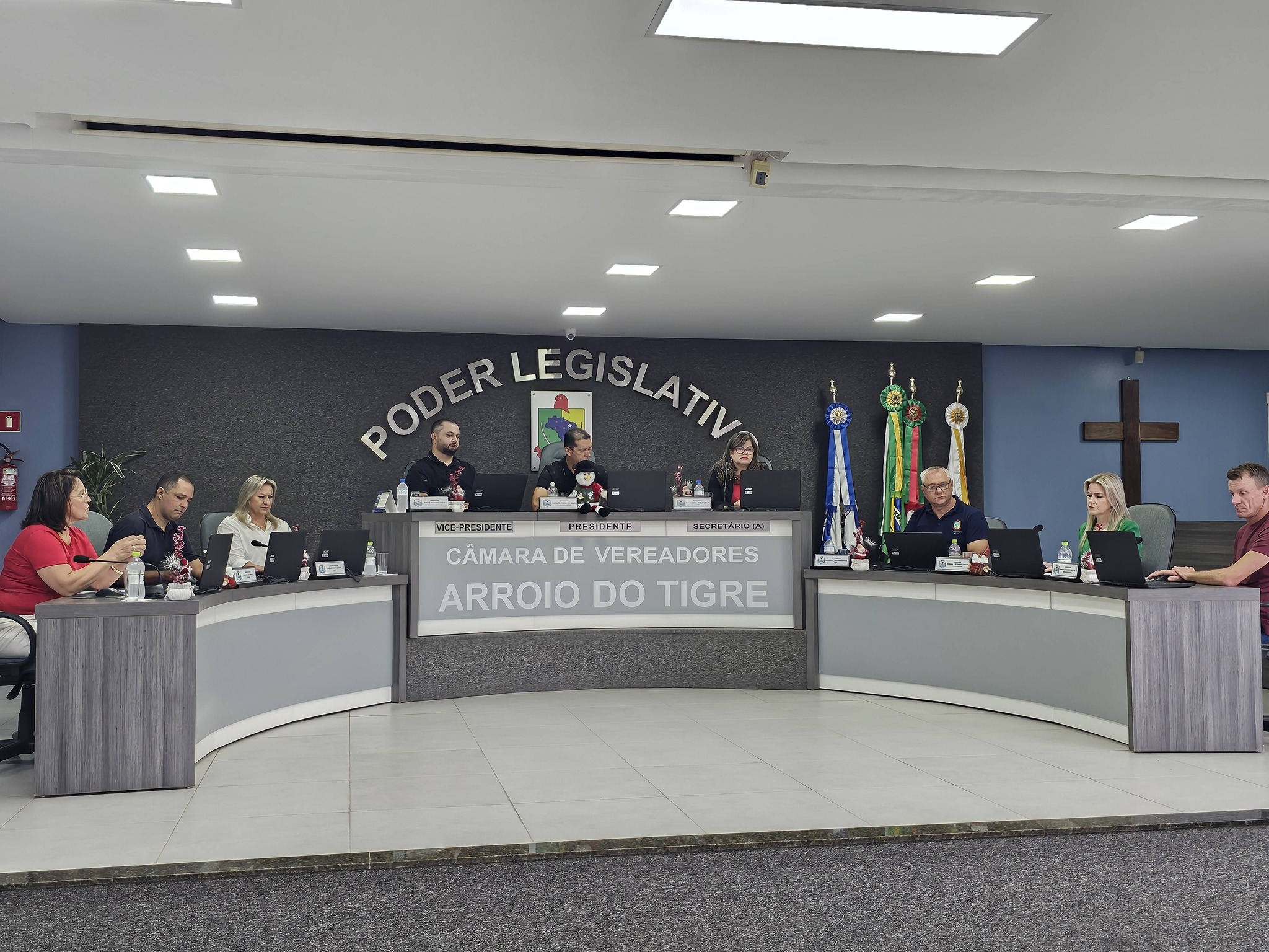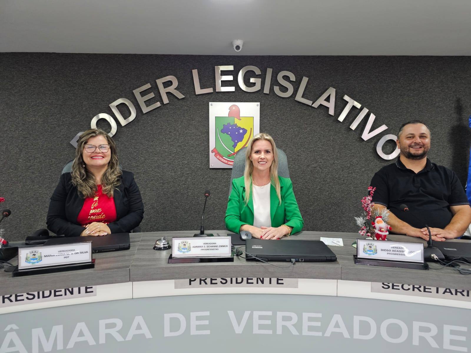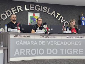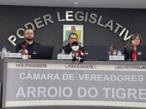 A Câmara de Vereadores de Arroio do Tigre realizou, na manhã desta segunda-feira, 29 de dezembro, a última Sessão Ordinária do ano de 2025, de nº 1684. Na ocasião, foi eleita a vereadora Adriana Simone Schanne Zimmer, a Drika (PP), como presidente da Mesa Diretora que conduzirá os trabalhos do Poder Legislativo municipal no exercício de 2026.