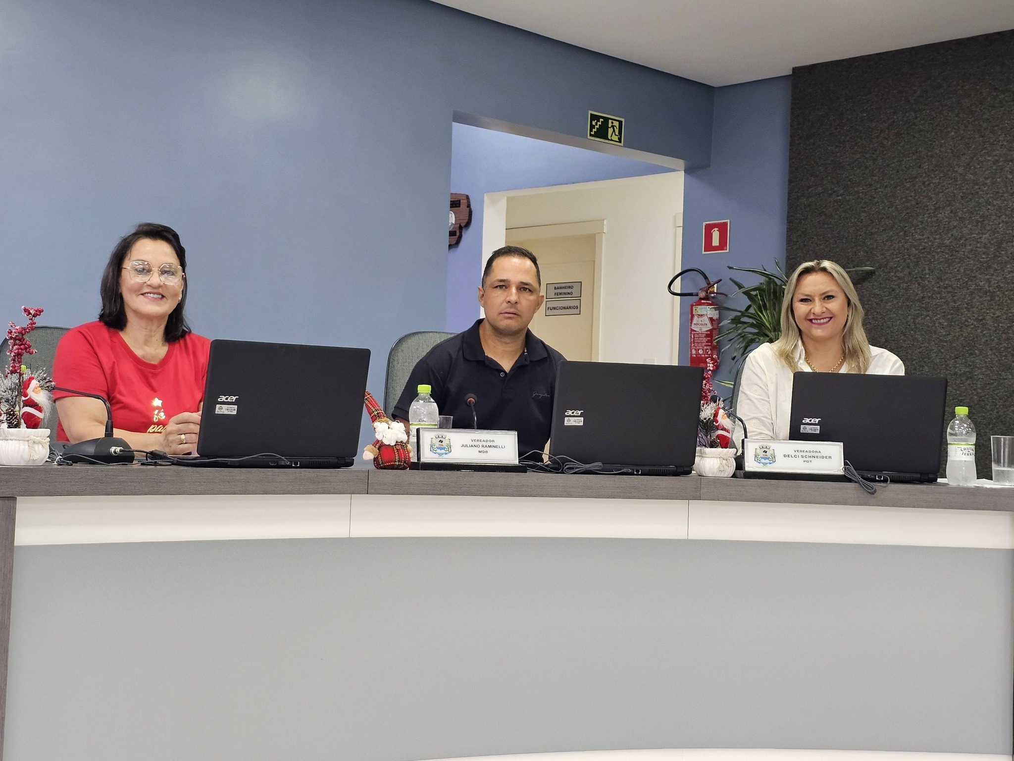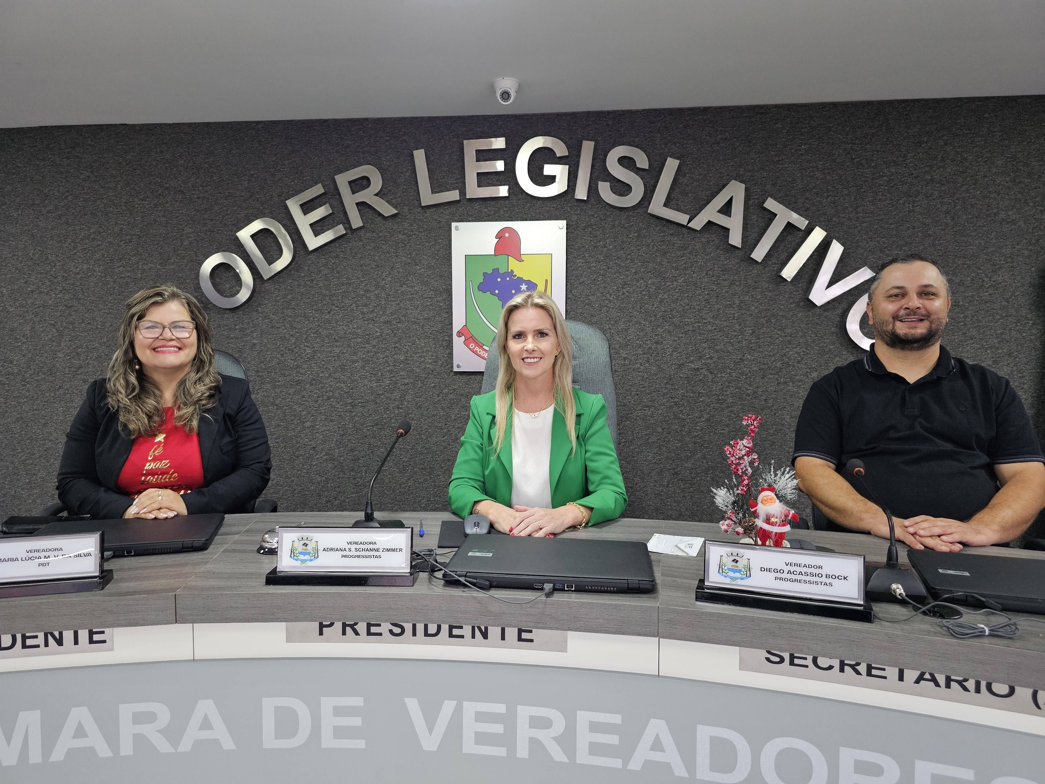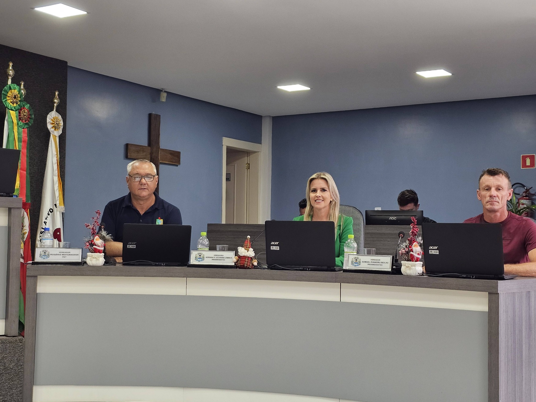 A sessão foi presidida pelo vereador Carlos Joceli da Silva (Carlinhos – PP), atual presidente da Casa, que esteve à frente dos trabalhos legislativos durante o ano de 2025. A leitura bíblica foi realizada pelo vereador Samuel Beilke.