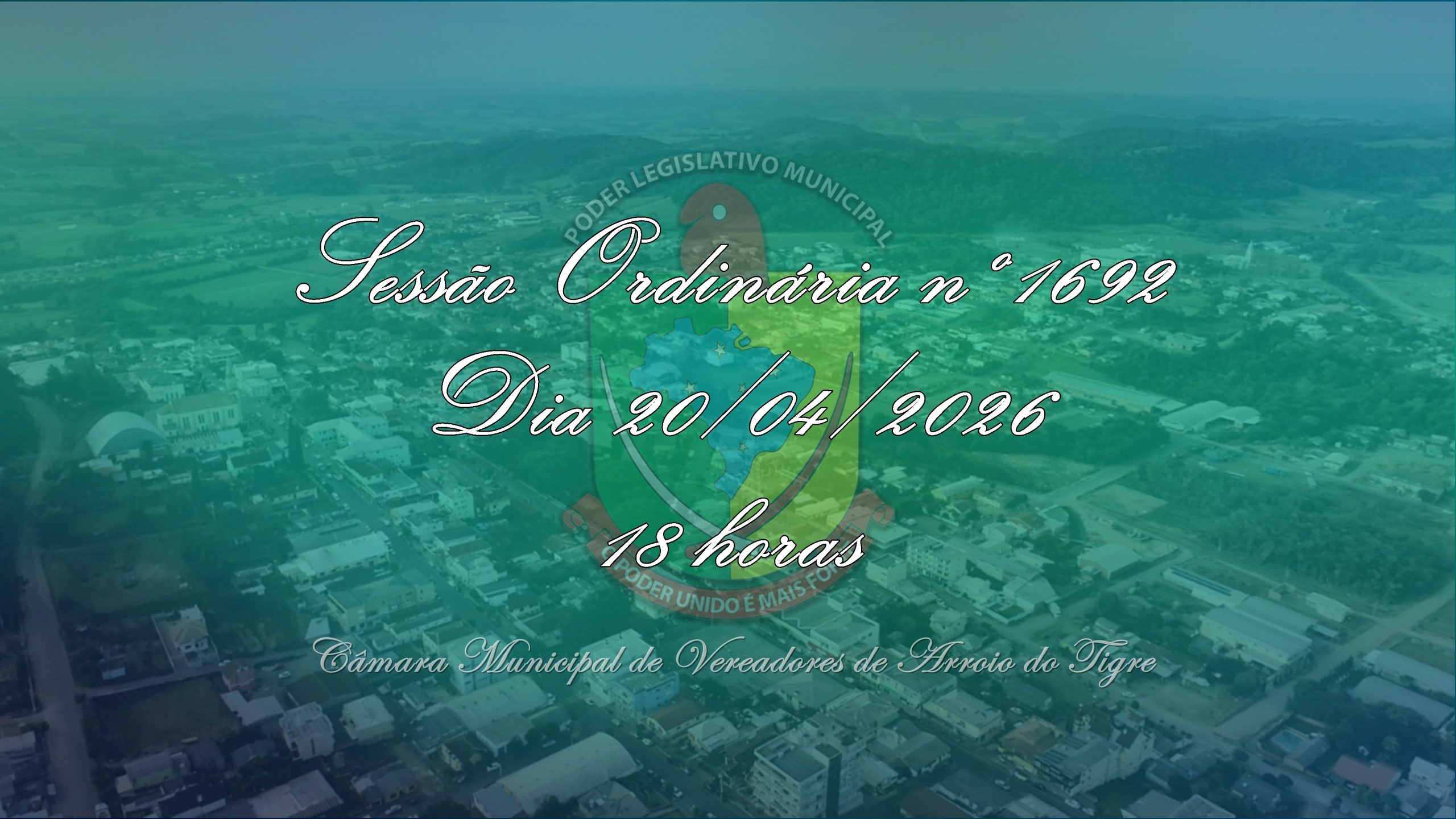 A Câmara Municipal de Vereadores de Arroio do Tigre convida toda a comunidade para acompanhar a Sessão Ordinária nº 1692. O encontro será realizado na próxima segunda-feira, dia 20 de abril de 2026, com início às 18:00 horas, na Sala de Sessões Armidório Oscar Pasa.