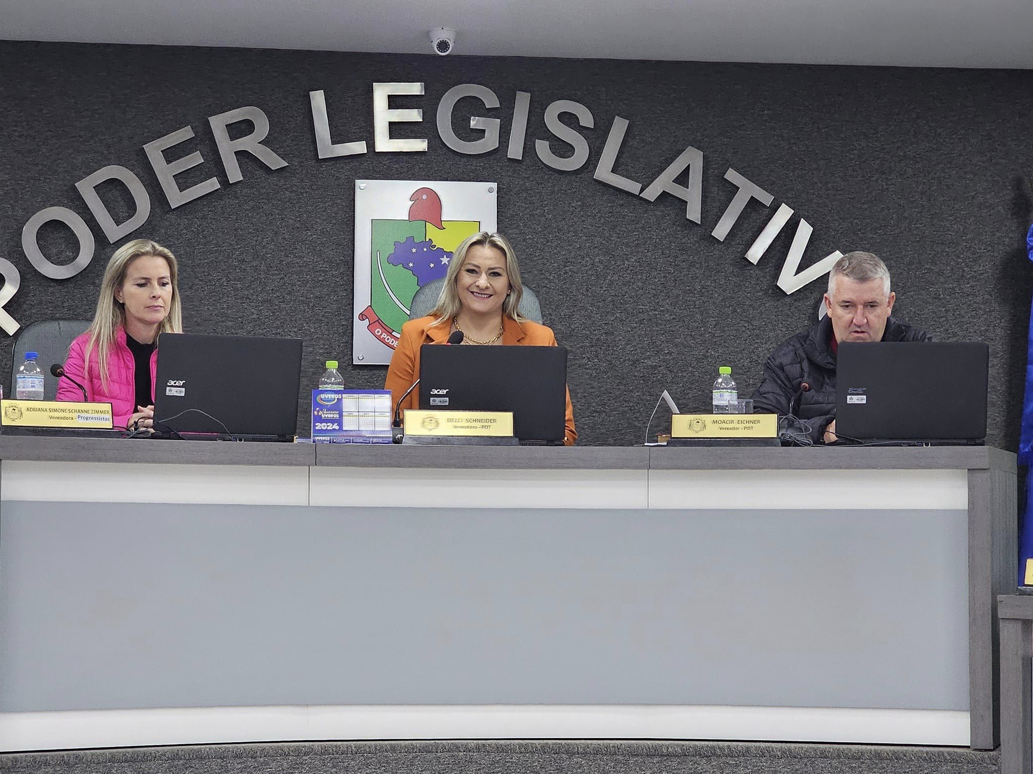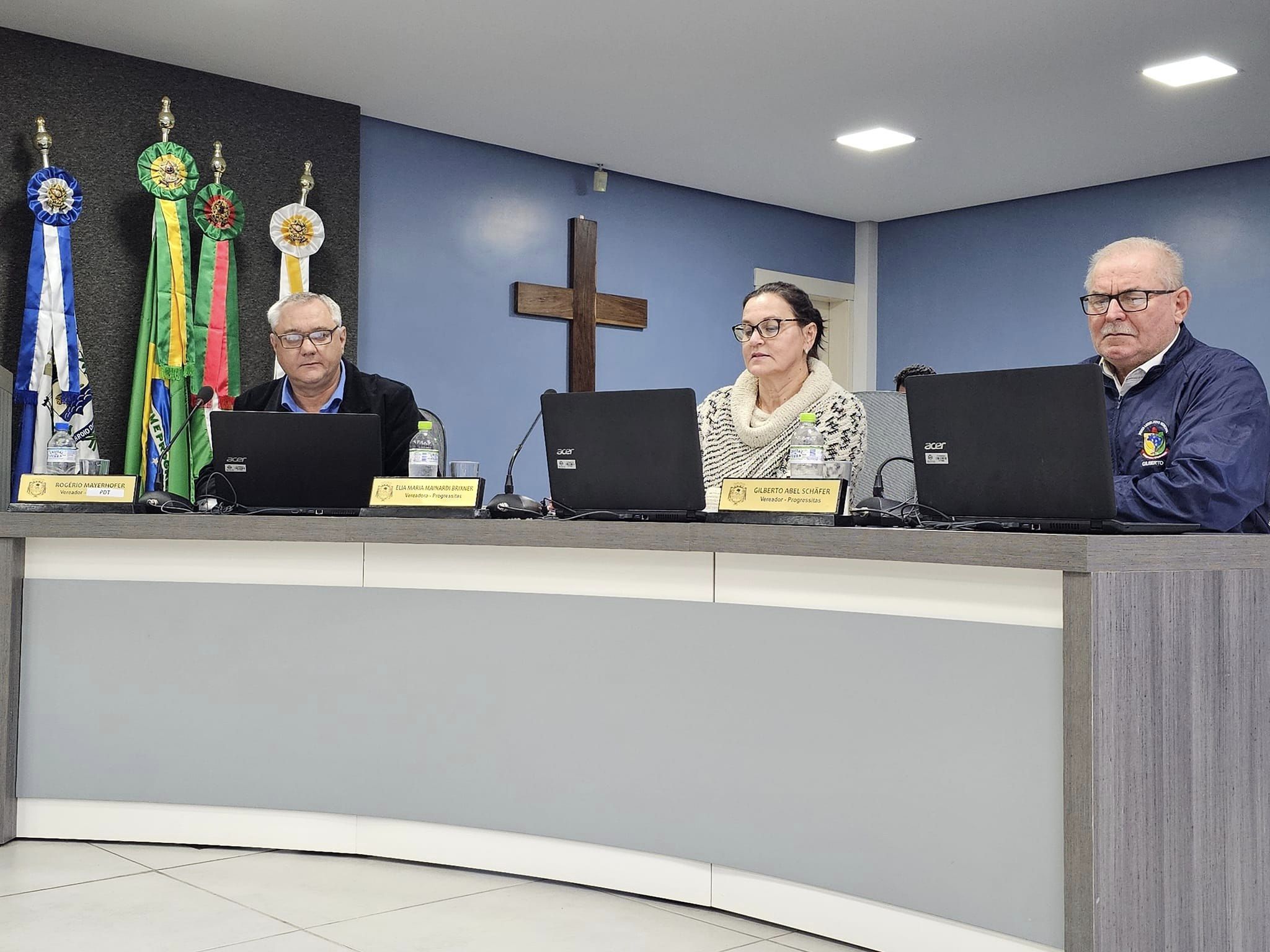 Os Vereadores estiveram reunidos em Sessão Ordinária, nesta segunda-feira, 03 de junho, para o primeiro encontro do mês. Sob a presidência da vereadora Delci Schneider (PDT), os trabalhos tiveram início, como de costume, às 18h. Após entoar o hino, foi efetuada a leitura bíblica e as correspondências recebidas e expedidas.