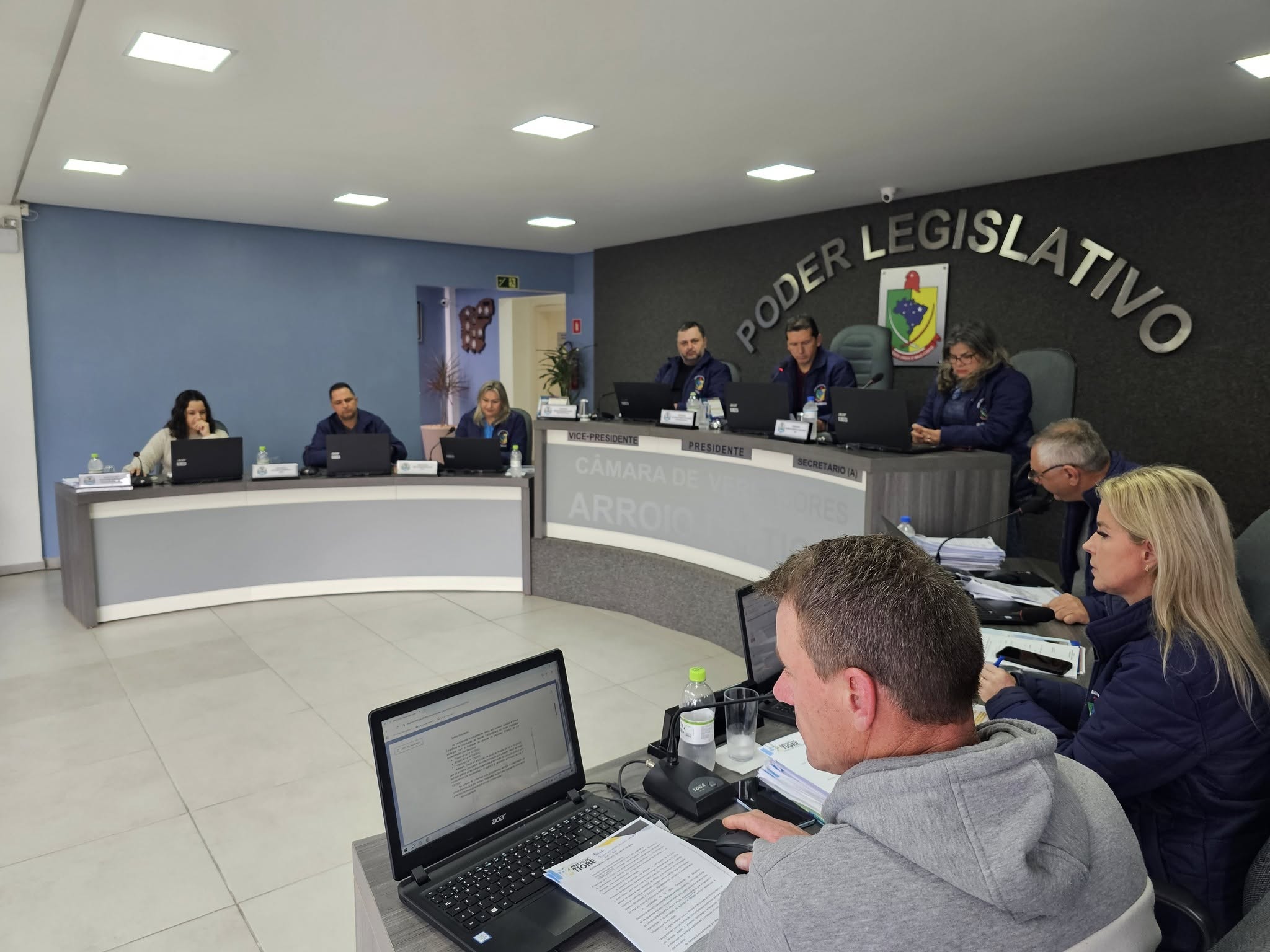 A Câmara Municipal de Vereadores de Arroio do Tigre realizou, na manhã desta quinta-feira, 21 de agosto de 2025, às 10h, a Sessão Extraordinária nº 220. A reunião foi conduzida pelo presidente da Casa, vereador Carlos Joceli da Silva (Carlinhos), no Plenário Armidório Oscar Pasa.